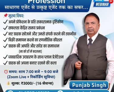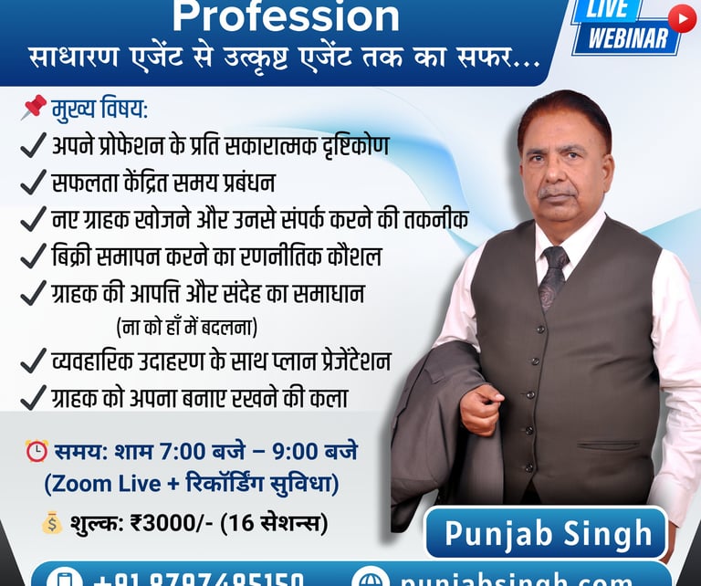 Join the "Excellence in Insurance Profession" LIVE webinar by renowned LIC advisor and motivational speaker Punjab Singh.